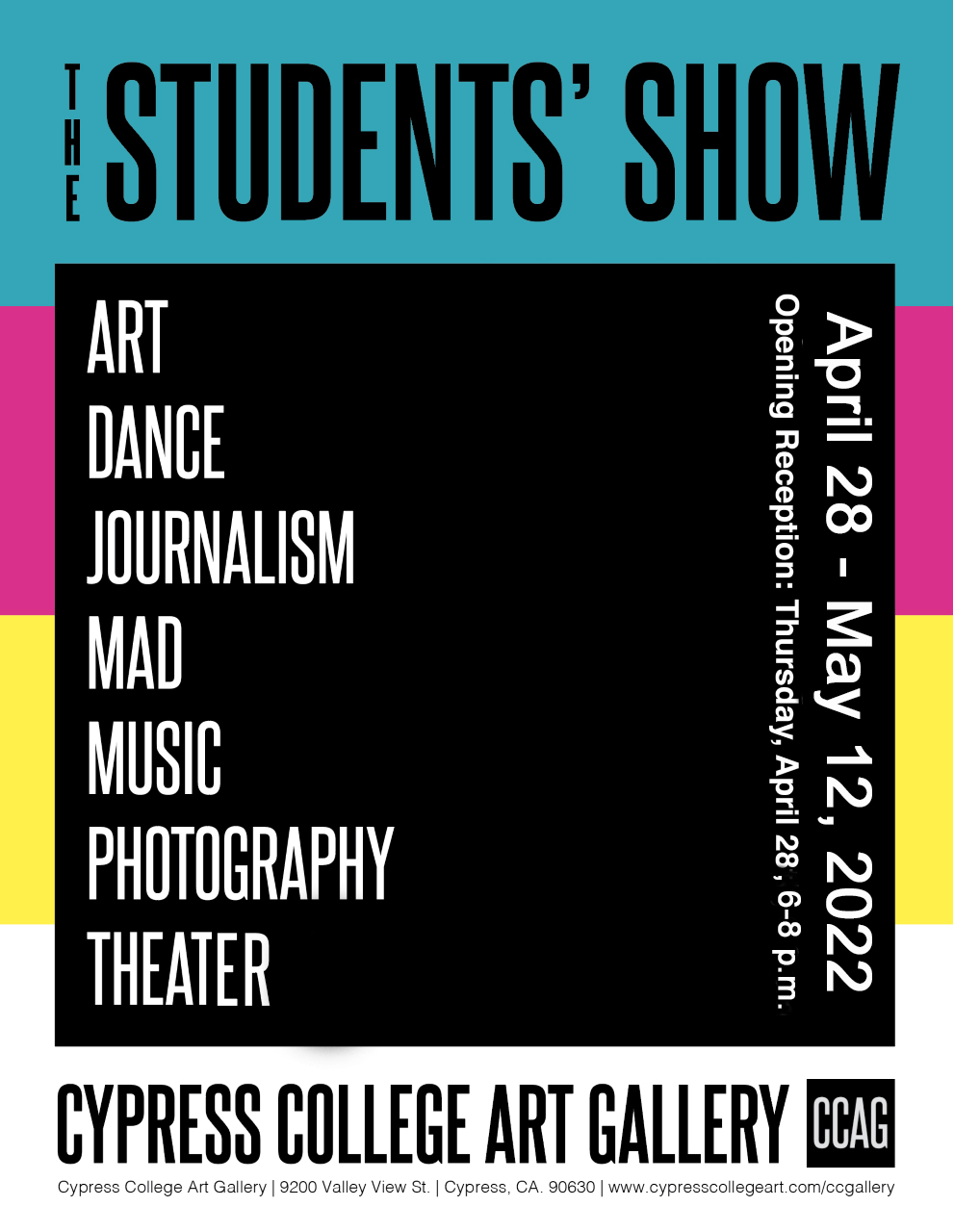 Our annual exhibition of student work, The Students’ Show, is once again LIVE at the Cypress College Art Gallery!